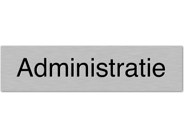 Dit deurbordje wordt voorzien van de tekst Administratie. Het wordt gemaakt van een hoge kwaliteit geanodiseerd Aluminium (1,5mm) en heeft geborstelde RVS uitstraling. De opdruk wordt verdiept gegraveerd en ingelakt. Deze techniek zorgt voor een permanente opdruk met een diepe glans.