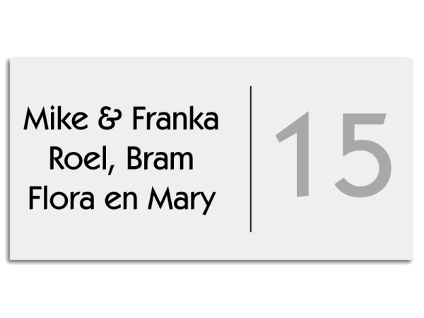 Dit naambord is leuk om te zelf te ontwerpen. Met de ontwerpmodule kun je heel eenvoudig je eigen ontwerp maken. De opdruk wordt tijdens de productie in de coating aangebracht.