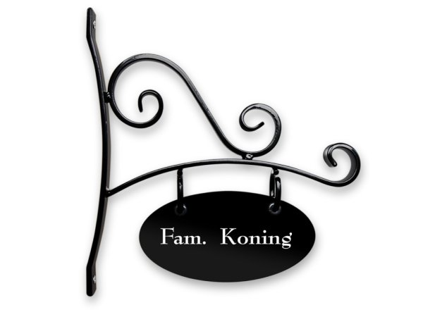 Dit mooie zwarte ambachtelijk uithangbord van zwart staal is een prachtige toevoeging voor naast uw voordeur of aan de gevel. Het frame en onderbord zijn gemaakt van gepoedercoat staal. Dit helpt roest voorkomen en geeft de garantie op een lange levensduur.