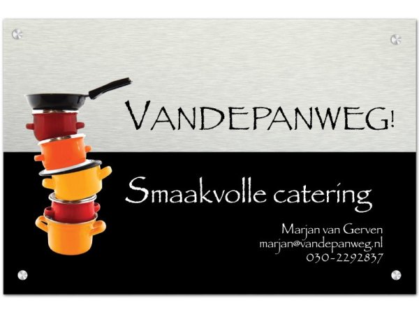 Dit aluminium bedrijfsnaambord heeft een afmeting van 60 x 40 cm en is perfect voor het aanbrengen van een logo, tekst of andere afbeeldingen. Het heeft een schitterende geborstelde zilverkleurige rvs look toplaag.