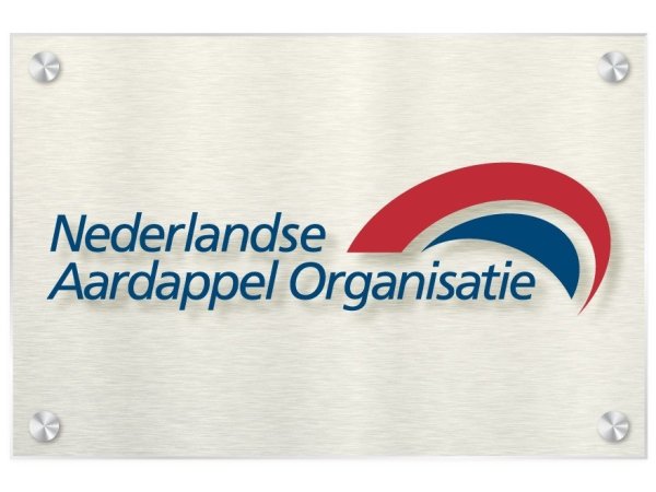 Dit unieke bedrijfsnaambord heeft een maatvoering van 30 x 20 cm en bestaat uit een een combinatie aluminium rvs look en plexiglas. Van het bord wordt de achterste plaat gemaakt van dibond rvs look en deze achterplaat heeft een dikte van 3 mm. De plexiglas plaat aan de voorzijde heeft een dikte van 5 mm en is helder. Tussen deze naamplaten zorgen de luxe rvs afstandhouders voor een afstand van 1,5 cm.