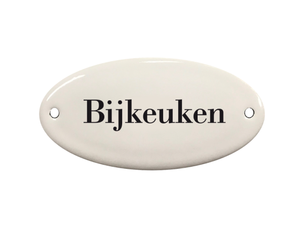 Dit leuke ovale deurbordje Bijkeuken heeft een mooie nostalgische uitstraling. Het is gemaakt van emaille en is wit van kleur.
