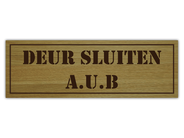 Dit houten deurbordje met de opdruk Deur sluiten is handig om op de deur te plaatsen. Combineer dit bordje Deur sluiten ook met andere deurbordjes uit deze serie voor mooi afgewerkt geheel.