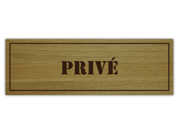 Dit houten deurbordje is voorzien van de tekst Prive. Dit luxe deurbordje daarmee perfect voor het aanduiden de functie van een ruimte die Prive is.