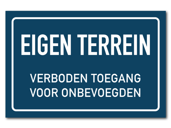Deze handige waarschuwingsborden met Eigen terrein / verboden toegang voor onbevoegden maakt duidelijk dat het terrein een eigen terrein betreft. De borden zijn leverbaar in verschillende afmetingen.