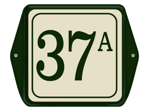 Je kan bij dit emaille model kiezen uit 9 verschillende kleuren voor de opdruk en de achtergrond van het huisnummer. De opdruk kleur is bij dit model tevens de kleur van het sierkader en het huisnummer. In het voorbeeld hebben we gekozen voor de kleurencobinatie opdruk kleur groen en bord kleur crème.