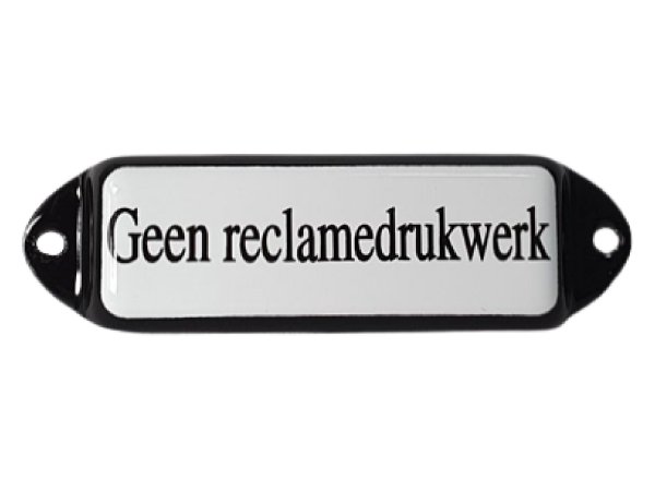 Dit klassieke naambordje is voorzien van de tekst Geen reclamedrukwerk. Het zorgt ervoor dat er geen ongeadresseeerd reclamedrukwerk meer wordt bezorgd. Dit mooie emaille naambordje is prachtig gemaakt en functioneel. Het beste van twee werelden.