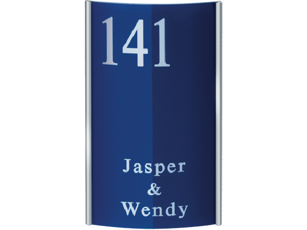 De gravoglas plaat wordt vervolgens in een aluminium frame geplaatst. We buigen de plaat zodat deze gebogen in het frame komt te staan. Het naambord monteer je makkelijk tegen de muur door middel van schroeven.