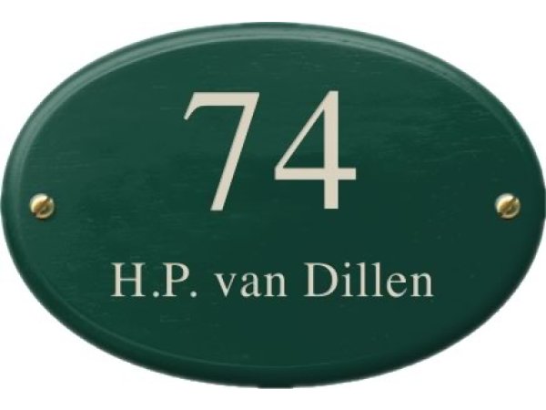 Dit naambord van hout is verkrijgbaar in de kleuren groen, rood, blauw, wit en in houtskleur en heeft een afmeting van 15 x 10,5 cm. De tekst wordt verdiept gegraveerd en krijgt de lichte kernkleur van het hout. Om het hout duurzaam en weerbestendig te maken wordt het bord voorzien van een zijdeglans laklaag in de door u gekozen kleur.