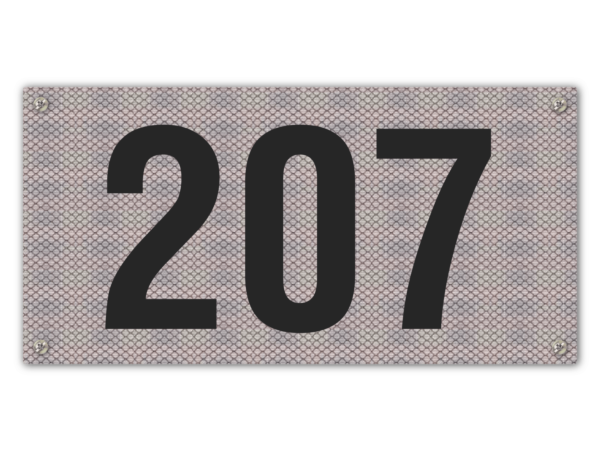 Deze afmeting is perfect geschikt voor 3 cijfers of tekens. Bij deze hoeveelheid kunnen we een cijferhoogte van minimaal 8,8 cm hanteren, waarmee het bord volledig voldoet aan de NEN 1774 norm. Deze norm stelt eisen aan de leesbaarheid van huisnummers in het donker. Bij meer dan 3 tekens wordt de cijferhoogte automatisch kleiner, waardoor het bord mogelijk niet meer aan de norm voldoet – maar we drukken uiteraard wat jij bestelt.