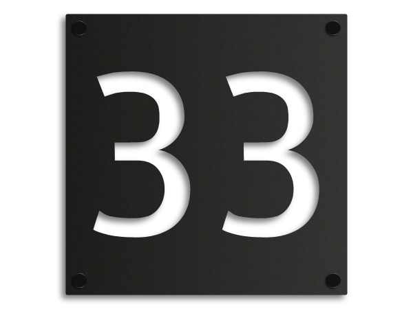 Dit huisnummerbord is met zorg vervaardigd in een stijlvolle matzwarte kleur. Met een afmeting van 30 x 30 cm en een robuuste dikte van 3 mm, is dit bordje een mooie toevoeging aan je huis. De kers op de taart zijn de zwarte afstandhouders van hoogwaardig gepoedercoat rvs. Deze houders zorgen ervoor dat je huisnummerbordje een stukje van de muur af komt en zo een zwevend effect verzorgen.