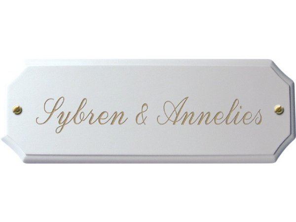 Het hout wordt bewerkt met een zijdeglans laklaag in de gewenste kleur, waardoor het naambord duurzaam en weerbestendig wordt. Bij dit naambord worden de benodigde luxe messing bevestigingsmiddelen meegeleverd.