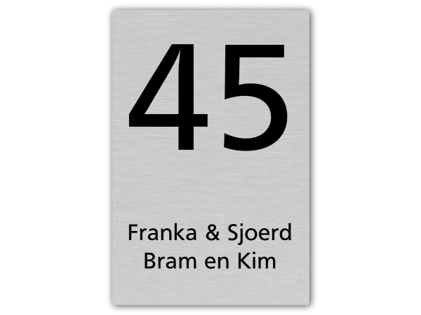 Dit mooie RVS look naambord wordt gemaakt van een hoge kwaliteit Aluminium. Door de geborstelde structuur heeft dit naambord een luxe uitstraling. De speciale coating geeft dit naambord een schitterende glans en de opdruk een diepe kleur.