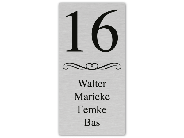 Dit mooie RVS look naambord wordt gemaakt van een hoge kwaliteit Aluminium. Door de geborstelde structuur heeft dit naambord een luxe uitstraling. De speciale coating geeft dit naambord een schitterende glans en de opdruk een diepe kleur.
