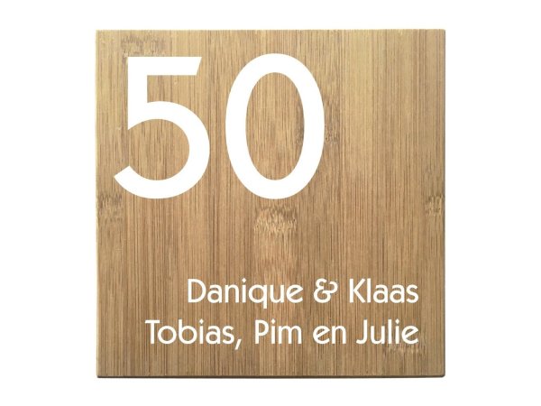 Dit naambord is een uniek naambord gemaakt van het materiaal bamboe. Het materiaal wordt netjes gelakt en vervolgens bedrukt met de gewenste opdruk die u zelf kunt ontwerpen.