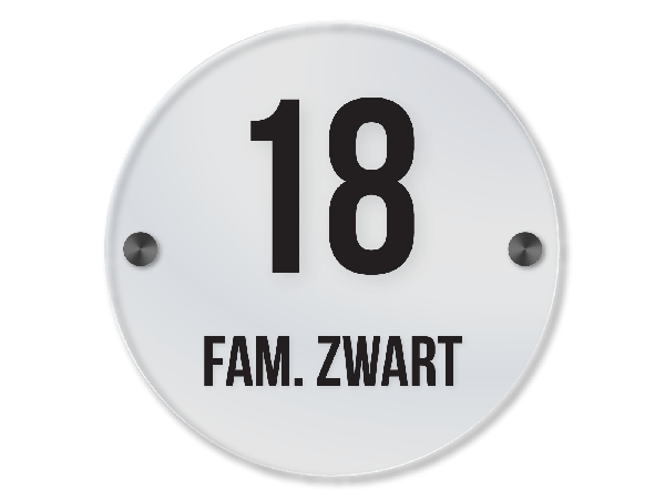 Dit leuke naambordje van plexiglas heeft een afmeting van Ø 20 cm. Door de ronde vorm krijgt dit naambordje een leuk en wat speels uiterlijk. Ronde vormen zijn perfect om grote vierkante vormen te doorbreken. Daarmee is een rond naambordje perfect voor bij de voordeur.