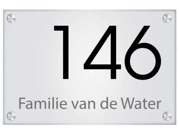 Voor de montage leveren wij een luxe set van 4 RVS afstandhouders mee. Door de bevestiging met deze afstandhouders komt het naambord op 1,5 cm afstand van de muur te staan en krijgt het een zwevend effect.