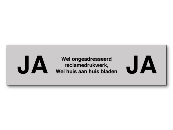 Dit zilverkleurige kunststof JA JA ongewenste reclame bord is het alternatief voor de eenvoudige sticker. Deze variant zorgt ervoor dat u wel ongewenst reklamedrukwerk en wel huis aan huis bladen ontvangt.