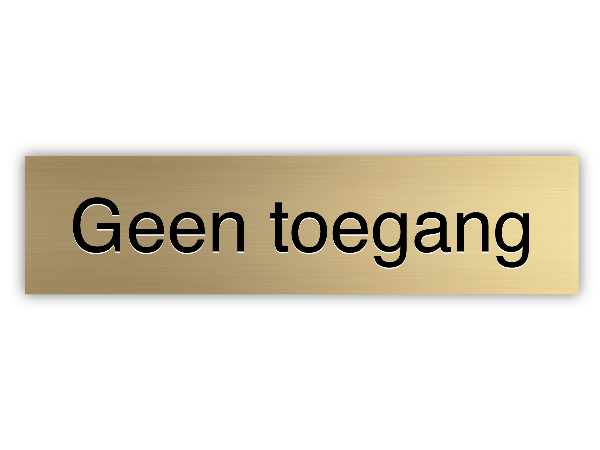 Dit messing deurbordje wordt voorzien van de tekst Geen Toegang. Dit luxe deurbordje wordt verdiept gegraveerd en vervolgens ingelakt met zwarte lak.