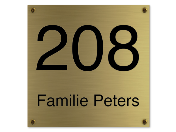 U kunt dit naambord bestellen in het standaard formaat en grotere afmetingen. Daarnaast heeft u keuze uit een bevestiging middels Messing schroefjes of luxe goudkleurige afdekdopjes.