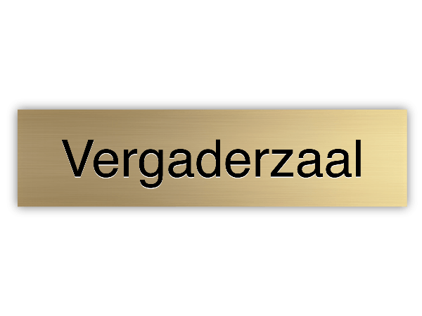Dit messing deurbordje wordt voorzien van de tekst Vergaderzaal. Dit luxe deurbordje wordt verdiept gegraveerd en vervolgens ingelakt met zwarte lak.