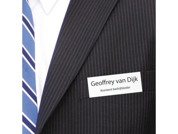 Er is keuze uit verschillende kleuren kunststof. De badge heeft een afmeting van 8 x 3 cm. Met de magneet op de achterzijde is deze badge eenvoudig te bevestigen.
