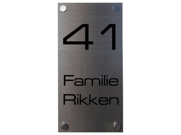 Dit luxe naambord is gemaakt van aluminium en heeft de uitstraling van rvs. Dit naambord wordt met de aluminium afstandhouders en afwerkdoppen zeer netjes afgewerkt. Het aluminium is geanodiseerd waardoor het niet gevoelig is voor weersomstandigheden.