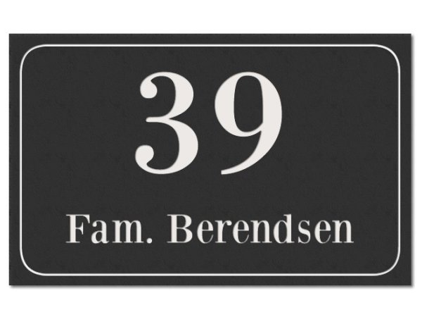 We noemen dit naambord Klassiek Emaille look omdat het in eerste instantie lijkt op een naambord van emaille. Dit is echter niet het geval en we gebruiken aluminium ter vervanging van emaille. Het is daarmee weerbestendig en makkelijk op maat te maken en snel te leveren.
