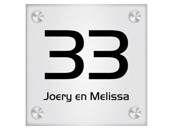 Nadat de opdruk is geplaatst wordt dit naambord voorzien van een zandstraalfolie op de achterzijde. Deze folie zorgt voor een mat effect en is lichtdoorlatend. De edgefolie geeft dit naambord een extra luxe uitstraling.