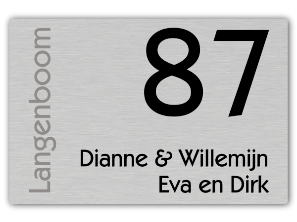 Dit mooie RVS look naambord wordt gemaakt van een hoge kwaliteit Aluminium. Door de geborstelde structuur heeft dit naambord een luxe uitstraling. De speciale coating geeft dit naambord een schitterende glans en de opdruk een diepe kleur.
