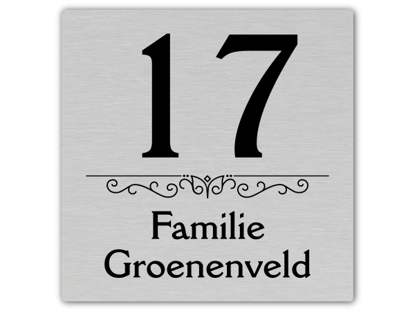 Dit mooie RVS look naambord wordt gemaakt van een hoge kwaliteit Aluminium. Door de geborstelde structuur heeft dit naambord een luxe uitstraling. De speciale coating geeft dit naambord een schitterende glans en de opdruk een diepe kleur.