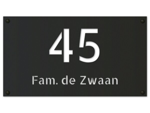 Wil je jouw entree verfraaien met dit moderne naambord? Stel het bord naar wens samen en bestel het eenvoudig online. Zo maak je jouw voordeur compleet met een naambord dat klasse en persoonlijkheid uitstraalt.