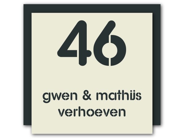 Dit unieke lasergesneden naambord bestaat uit twee lagen kwaliteit Acrylaat (kunststof) platen met een dikte van 3mm die met elkaar worden verlijmd. De bovenste plaat heeft de kleur Steen Wit en de onderste plaat heeft de kleur Antraciet.