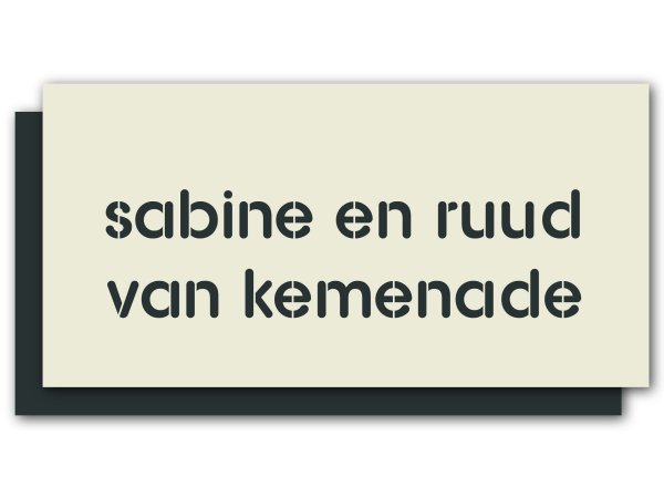 De opdruk wordt uit de bovenste plaat gesneden. Hierdoor kijkt u door de bovenste plaat en wordt de onderplaat zichtbaar. Wij maken gebruik van de modernste lasersnijtechniek. Hierdoor wordt de opdruk zeer nauwkeurig uitgesneden.
