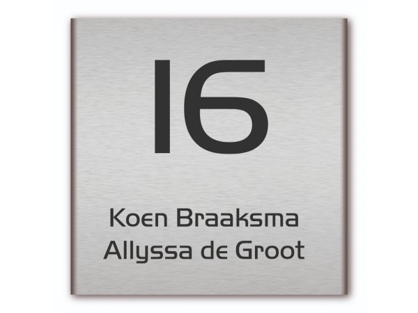 Dit stijlvolle aluminium naambord van 15 x 15 cm combineert een strak vierkant ontwerp met een hoogwaardige RVS look. De subtiel gebogen randen laten het naambord circa 2 cm van de muur af komen, wat zorgt voor een chique, zwevend effect bij de voordeur.