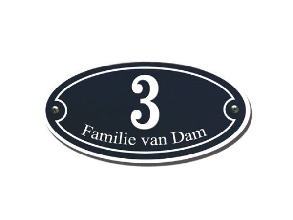 Dit fraaie emaille naambord is licht gebold en heeft een leuke ovale vorm. De tekst wordt mooi gebogen onder het huisnummer geplaatst. Samen met het sierlijke kader is dit emaille naambord een lust voor het oog en een fraaie aankleding voor de voorgevel.
