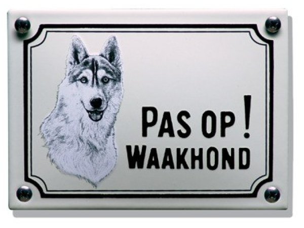 Hier waak ik bordje met foto Husky 14 x 10 cm