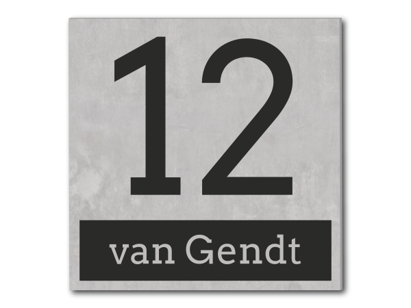 Dit naambord van beton kunt u reinigen met een vochtige doek. Gebruik geen agressieve reinigingsmiddelen.