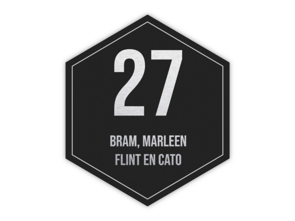 Ben je op zoek naar een uniek naambord dat opvalt? Dit moderne, zeshoekige naambord, ook wel hexagon genoemd, biedt een stijlvolle en unieke uitstraling. Met een unieke vorm en strak design is het een opvallend alternatief voor traditionele rechthoekige naamborden.