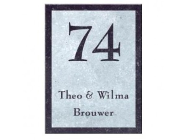 Dit bijzondere natuurstenen naambord straalt kwaliteit en luxe uit. Het bord wordt vervaardigd uit Belgisch Hardsteen. Hierdoor is ieder naambord van natuursteen uniek. Dit type natuursteen heeft een donkere toplaag. De opdruk wordt zeer nauwkeurig aangebracht middels moderne lasertechniek. Wanneer de opdruk wordt gegraveerd verdwijnt de toplaag en wordt de lichtgrijze kern zichtbaar.