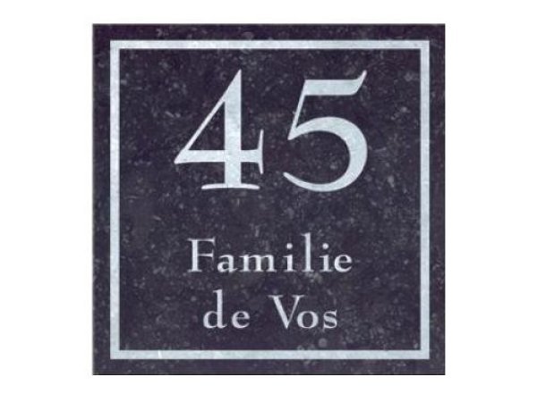 Dit mooie vierkante natuurstenen naambord staat voor kwaliteit en luxe. Het naambord wordt vervaardigd uit massief Belgisch Hardsteen. Hierdoor is ieder naambord uniek. Dit type steen heeft een donkere toplaag. De opdruk wordt zeer nauwkeurig aangebracht middels de modernste technieken. Wanneer de opdruk wordt gegraveerd verdwijnt de toplaag en wordt de lichtgrijze kern zichtbaar. Het naambord heeft een dikte van 2 cm en is eenvoudig te monteren middels lijm of de onzichtbare bevestigingsset. Selecteer bij het bestellen de keuze van de gewenste bevestiging. Ieder Belgisch Hardstenen naambord wordt voor u op maat gemaakt. Als u kiest voor dit hardstenen naambord bent u verzekerd van een uniek product van hoge kwaliteit.