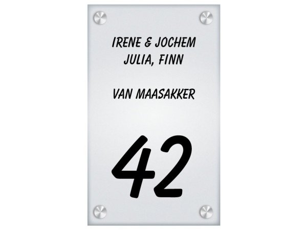 We leveren bij dit naambord een set van 4 luxe rvs afstandhouders mee die ervoor zorgen dat het naambord netjes aan de muur kan worden bevestigd. Deze afstandhouders zorgen voor een zwevend effect van het bord op 1,5 cm afstand van de muur.