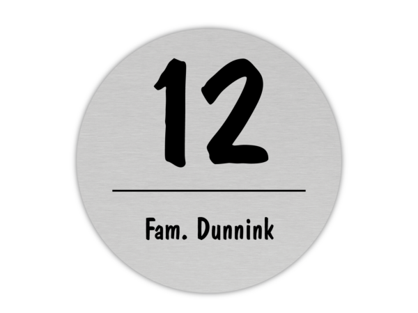 Ben je op zoek naar een naambord met een unieke vorm? Dit ronde naambord is allesbehalve standaard. Met een diameter van 15 cm en vervaardigd uit hoogwaardig met een rvs-look toplaag, combineert dit naambord duurzaamheid met een luxe uitstraling. De geborstelde toplaag lijkt sprekend op echt rvs en straalt moderniteit en verfijning uit.