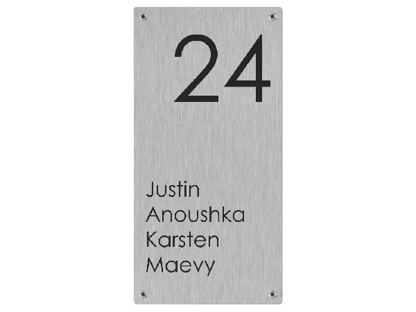 Onze RVS naamborden worden gemaakt van topkwaliteit geborsteld RVS (inox) dat niet roest en onderhoudsvriendelijk is. Zo geniet je van een elegant en duurzaam naambord dat de perfecte eerste indruk geeft bij jouw woning.