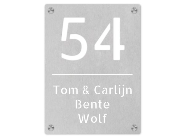 Wij leveren dit rvs naambord met een set luxe rvs afstandhouders. Deze houders zorgen voor een afstand van een centimeter tot de muur.