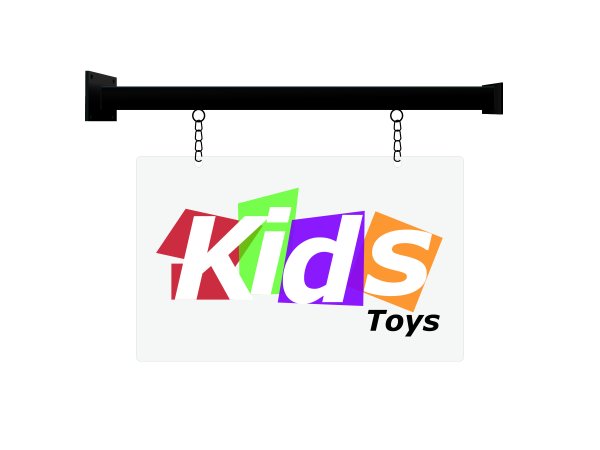 Dit uithangbord bestaat uit een zwart frame en een wit onderbord dat aan weerszijden wordt bedrukt. Het geheel heeft een afmeting van 50 x 35 centimeter. Het frame van zwart gecoat staal heeft een lengte van 50 centimeter. Het is voorzien van ketingen waar het onderbord aan bevestigd worden.