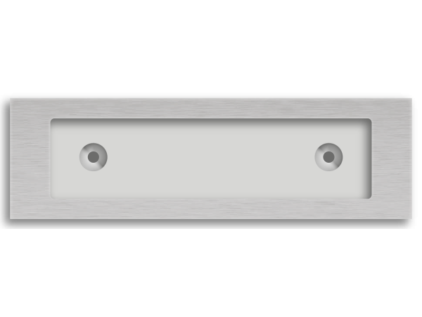 We maken deze aluminium houder met een zij-inschuifsysteem of met een kliksysteem. Het venster heeft een afmeting van 80 x 20 mm en het naamplaatje is 84 x 23 mm bij een zij-inschuifsysteem of 83 x 19,5 mm als je kies voor een kliksysteem. Bestel hier naamplaatjes die speciaal gemaakt worden voor in deze naamplaathouder.