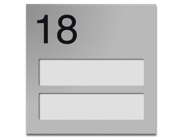 Deze naamplaathouder met twee vakken is ideaal voor op bijvoorbeeld de deur van een kantoor. De houder wordt voorzien van een verdiept gegraveerd nummer. Gebruik deze naamplaathouder voor bijvoorbeeld flexibele wisselende ruimtes.