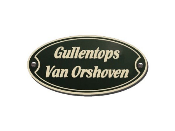 Dit mooie ovale emaille naamplaatje is een absolute aanwinst voor je voordeur of gevel. Het is een van de mooie klassieke naamplaatjes die we bieden. We leveren dit ovale gebolde emaille naamplaatje in de afmetingen 10 x 5 cm en 20 x 10 cm.
