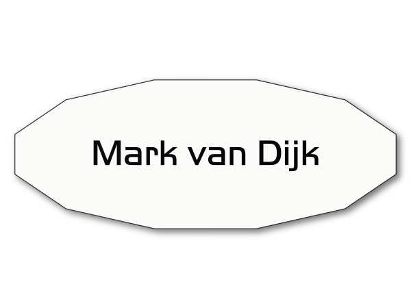 Dit naamplaatje van kunststof heeft een wat eigenwijze uistraling. Het naamplaatje heeft een afmeting van 12,8 x 5 cm en is leverbaar in verschillende kleuren. De opdruk wordt verdiept gegraveerd en zowel het naamplaatje als de opdruk is weerbestenddig en krasvast. De opdruk wordt gezet door onze graveur op basis van de ingevoerde opdruk en opmaak gemaakt.